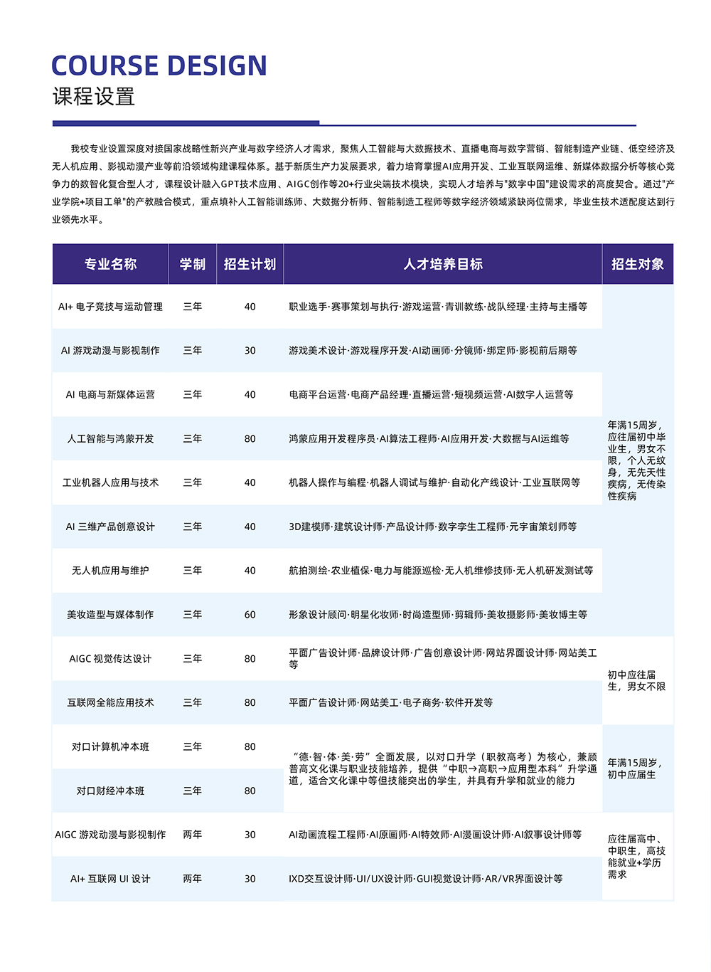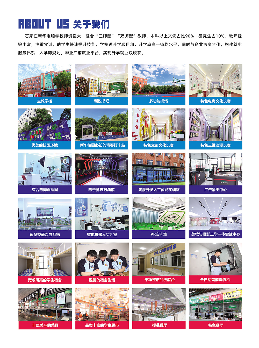 石家庄新华电脑学校招生简章: 招生专业: 1、Al电子竞技与运动管理 2、AI游戏动漫与影视制作 3、AI电商与新媒体运营 4、人工智能与鸿蒙开发 5、工业机器人 6、AI三维产品创意设计 7、无人机 8、美妆造型与媒体制作 9、视觉传达设计 10、互联网全能应用 11、游戏动漫 12、AI+互联网UI设计
